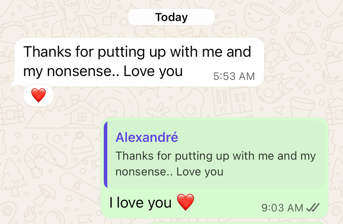 When I was under immigrant arrest in Poland — all he did was look for solutions with my best friend when my phone was seized and hoped for the best until my release. Alexandré has also read some of the worst things said about me but chooses to allow me to speak to those issues on my own terms. I never feel judged, coaxed or forced to speak my truth with him. And neither does he. He accepts that he will be a witness to my life and that I will a witness to his. Imperfect but still worth witnessing. I love that.